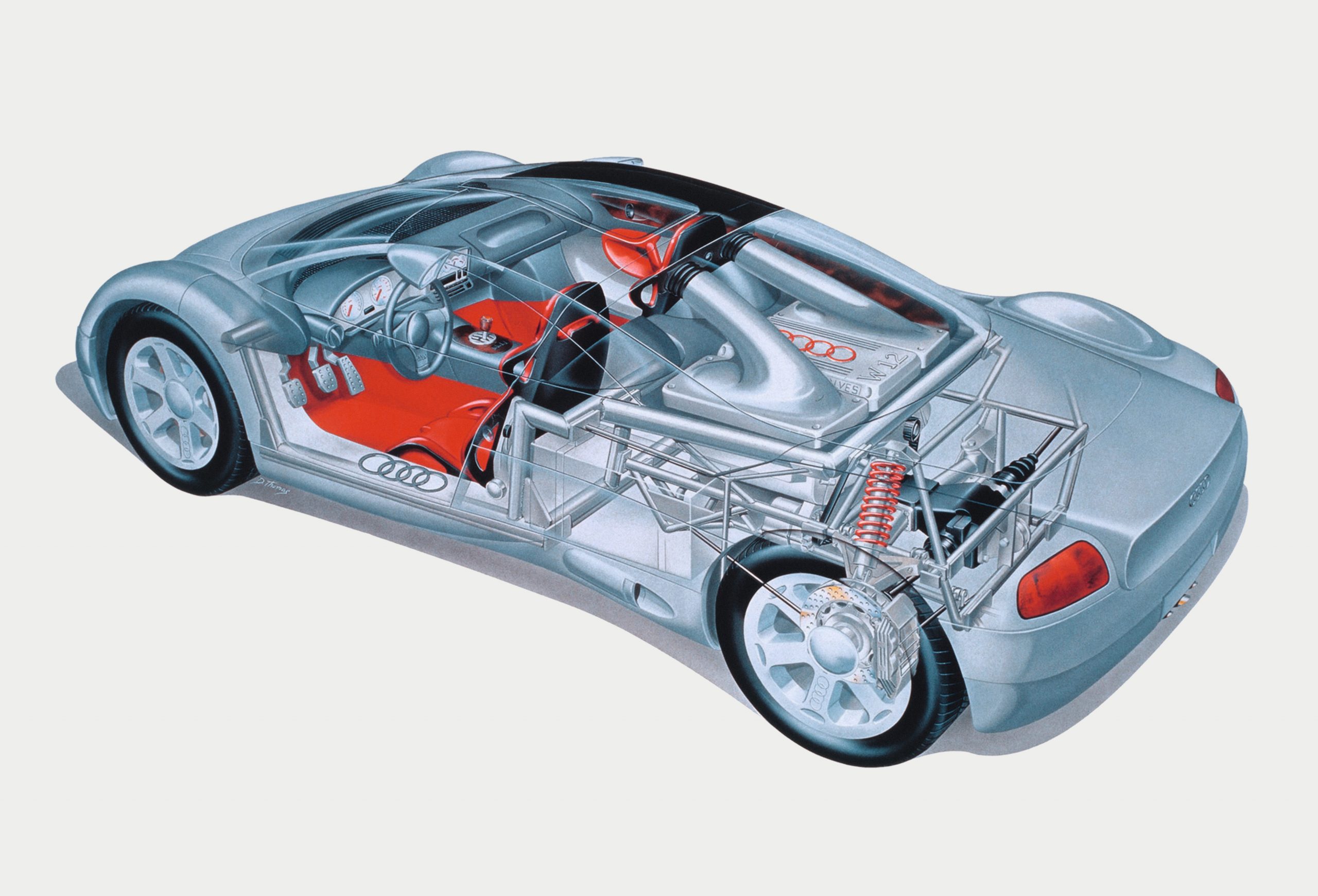 En 1990, Audi préparait le terrain pour la Audi A8, une berline de luxe qui, quatre années plus tard, allait devenir la première voiture de production utilisant l’aluminium pour sa carrosserie et son châssis (Audi Space Frame).