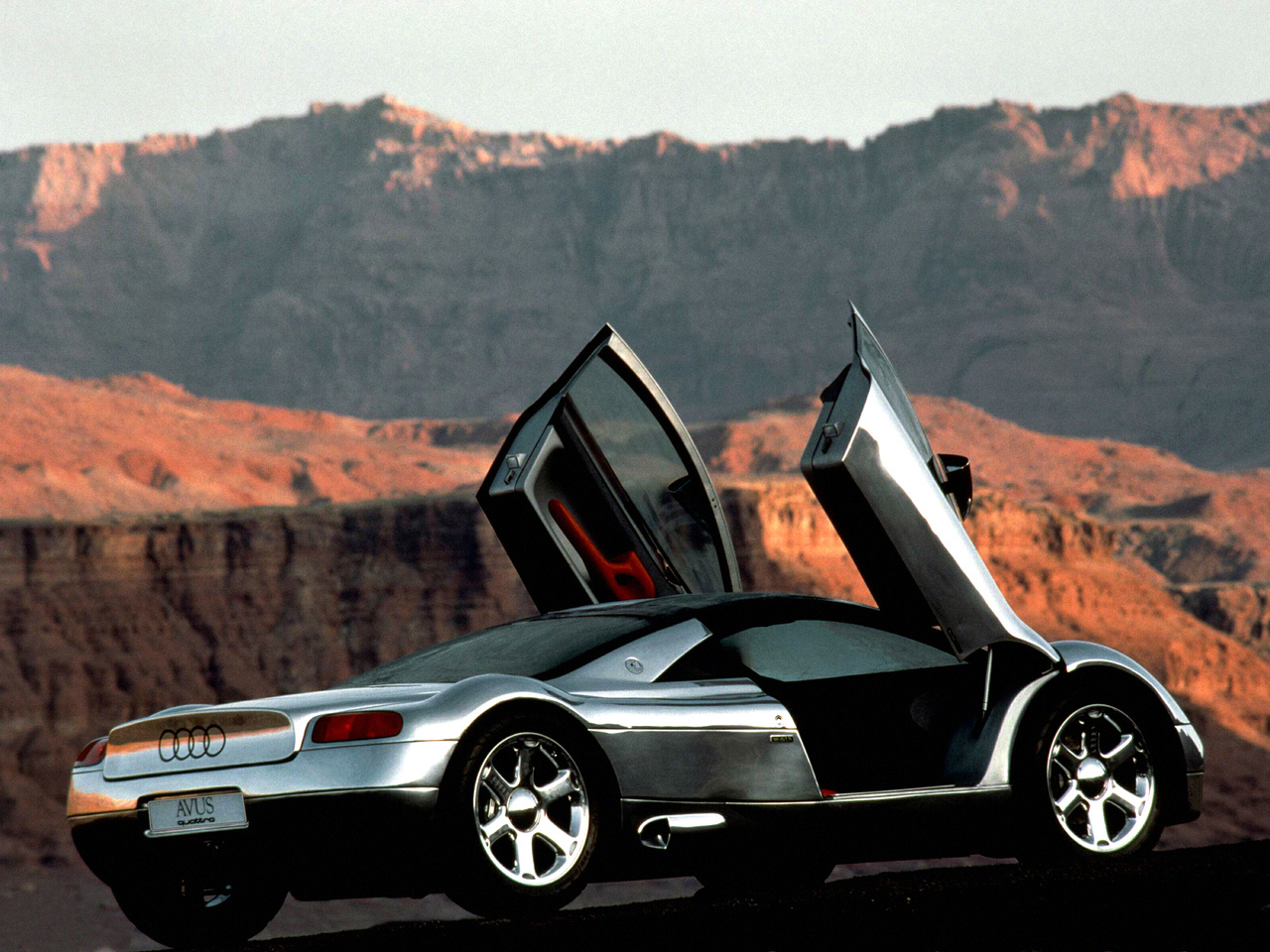 Le concept Avus, dévoilé au Salon de Tokyo en 1991, combinait les deux, le rouage quattro et l’aluminium. Pour marquer les esprits, Audi la voulait spectaculaire. Et l’Avus était spectaculaire. Fascinante, même.