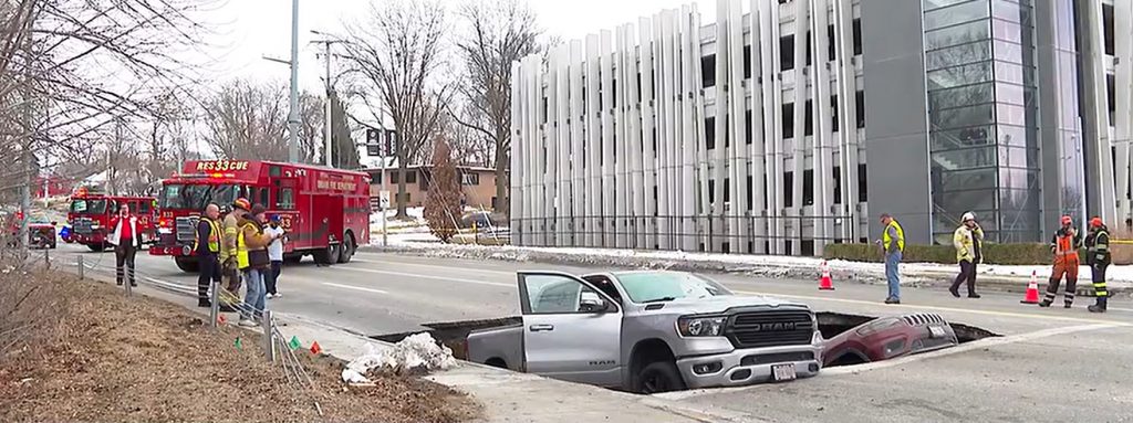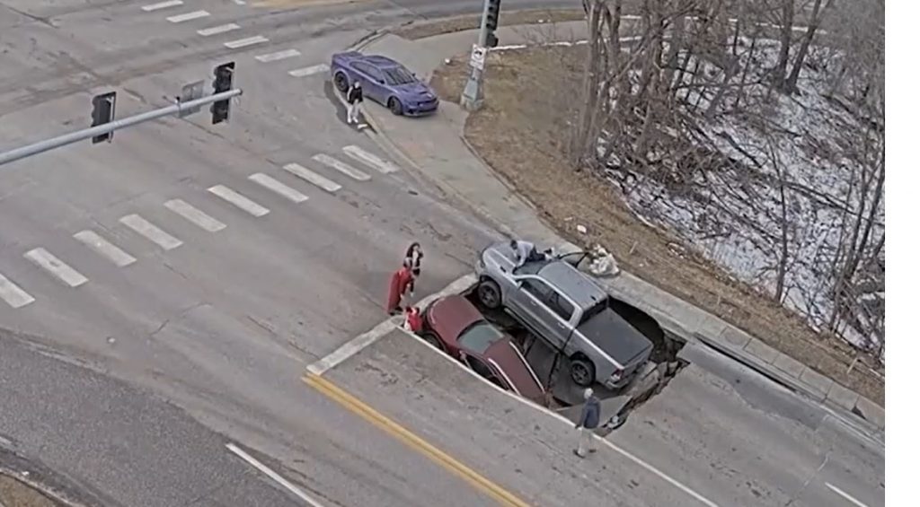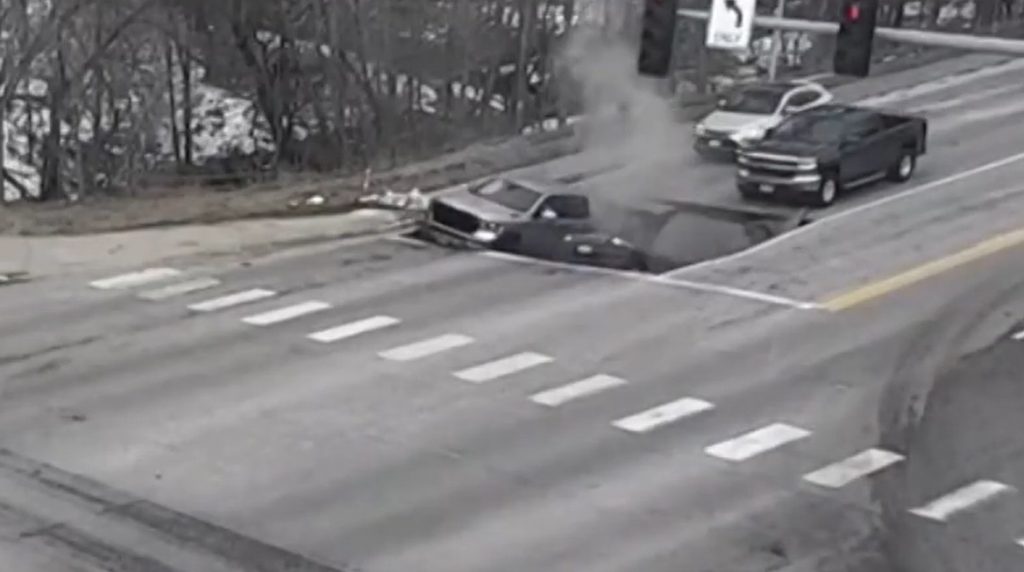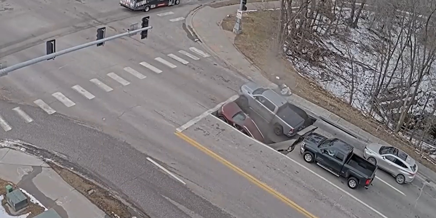 Dans le cas d’Omaha, les conducteurs du Ram 1500 et du Jeep Cherokee n’ont pas été blessés. Mais ils en ont été quittes pour une bonne frousse! On ne sait pas si les véhicules ont subi de lourds dommages. Si la chaussée s’était effondrée alors que le feu était vert, on n’ose imaginer les conséquences.