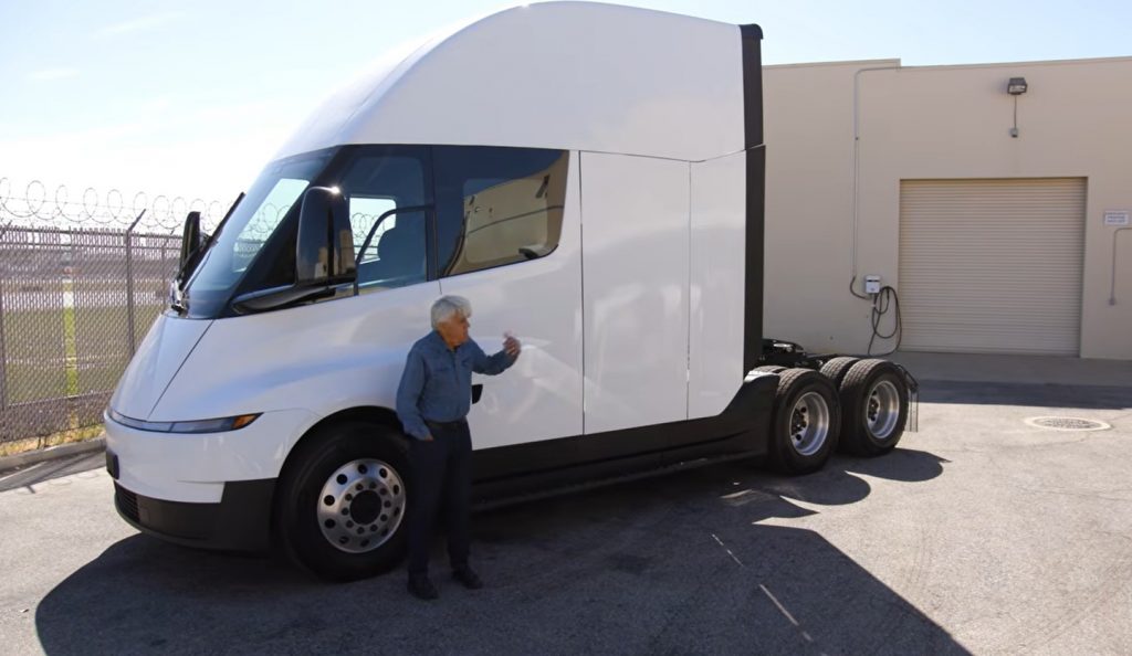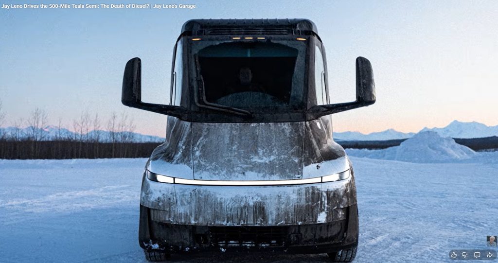 Bref, le populaire animateur Jay Leno a pu faire l’essai d’un Semi (c’est ainsi que Tesla a baptisé son camion. Avouez que c’est super original.) Beau stunt publicitaire pour Tesla qui commence en ce moment même à livrer des versions de production.