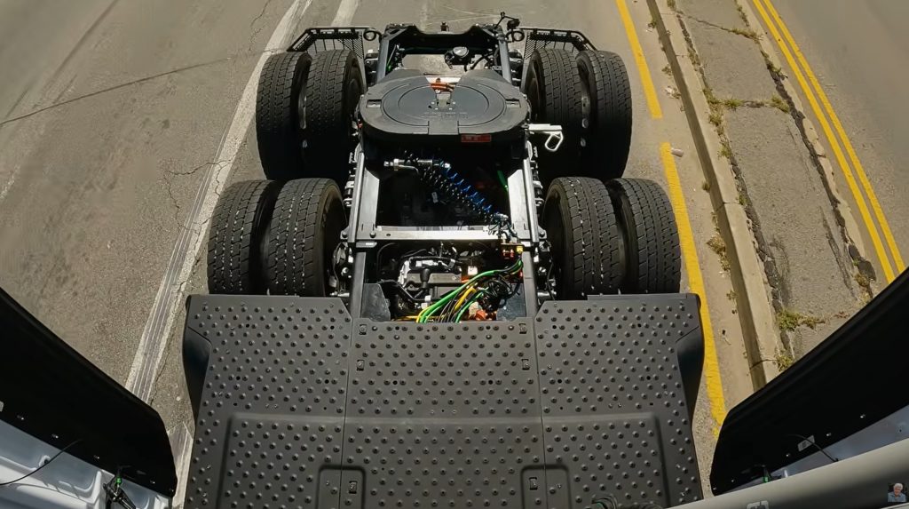 Deux versions du Semi sont offertes. De base, on parle d’une version à 325 milles (523 km) d’autonomie. Il existe aussi une version 500 milles (805 km). Oui, bon, on s’entend que, comme pour les voitures électriques, l’autonomie en hiver avec une remorque chargée (charge utile – ou payload – de 45 000 livres, 20 412 kg) doit être un peu moins élevée.