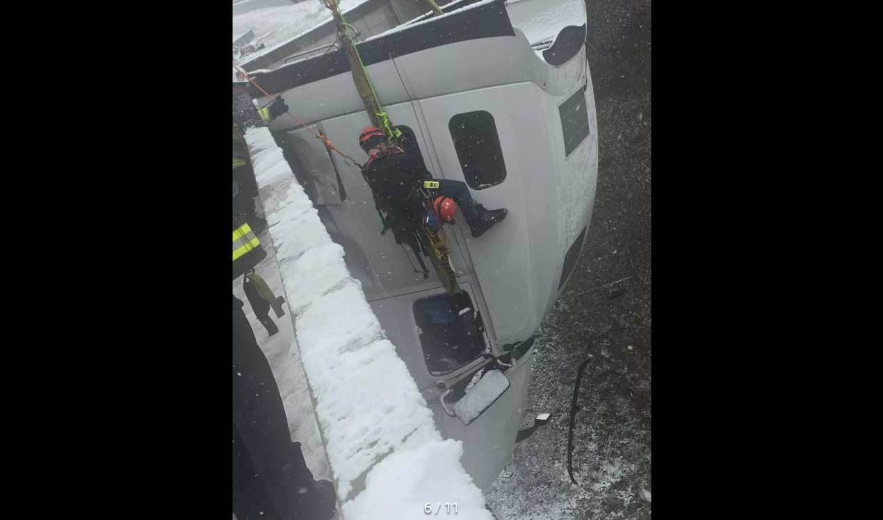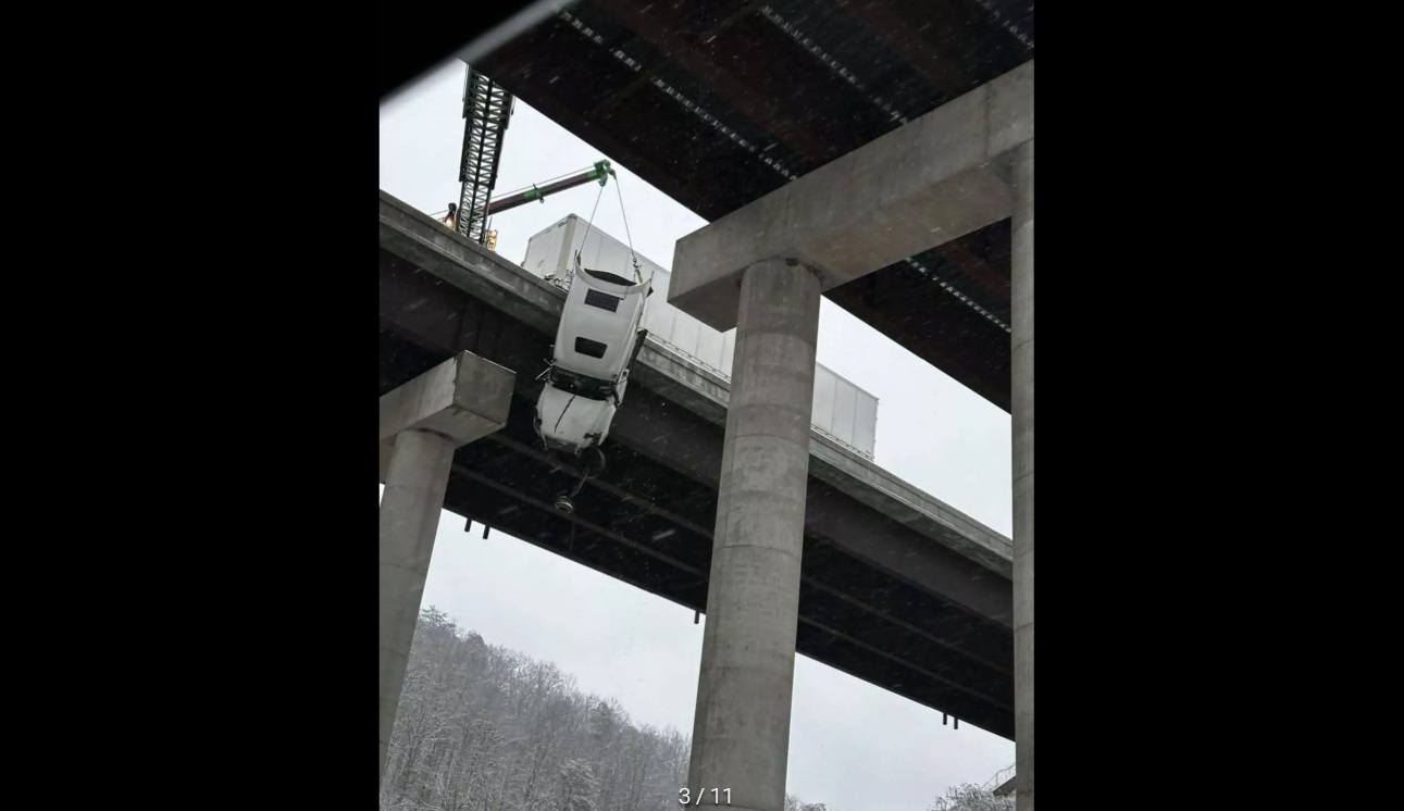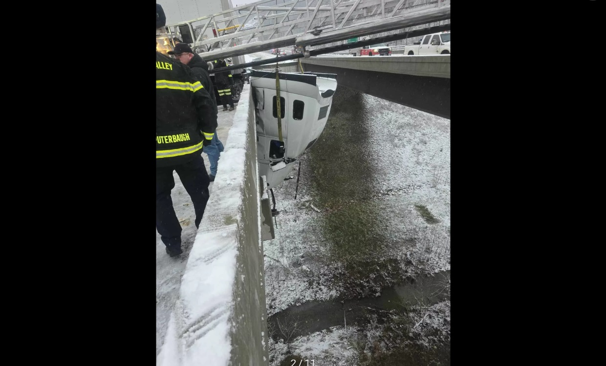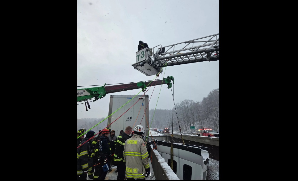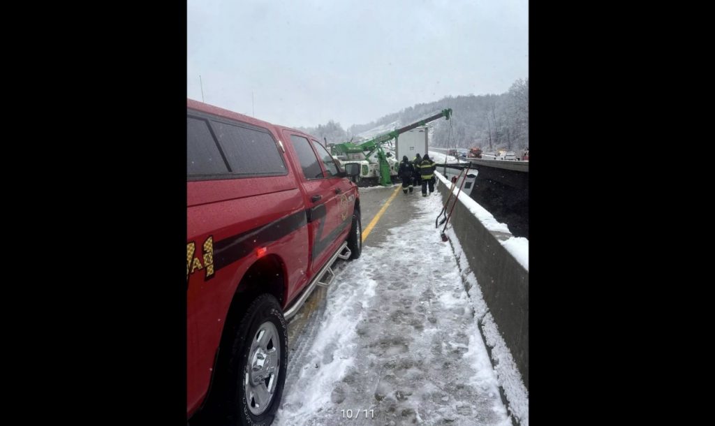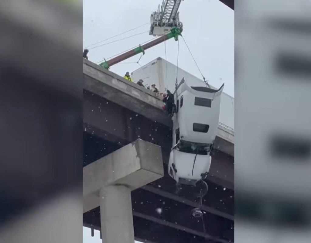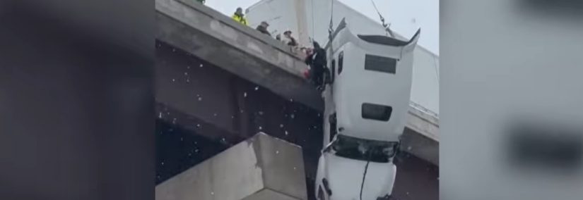 Le 2 décembre, le chauffeur d’un camion-remorque a connu quelques heures plutôt angoissantes lorsque la cabine s’est retrouvée suspendue dans le vide, à environ 100 pieds d’une route en contrebas. Un petit mardi matin, quoi…