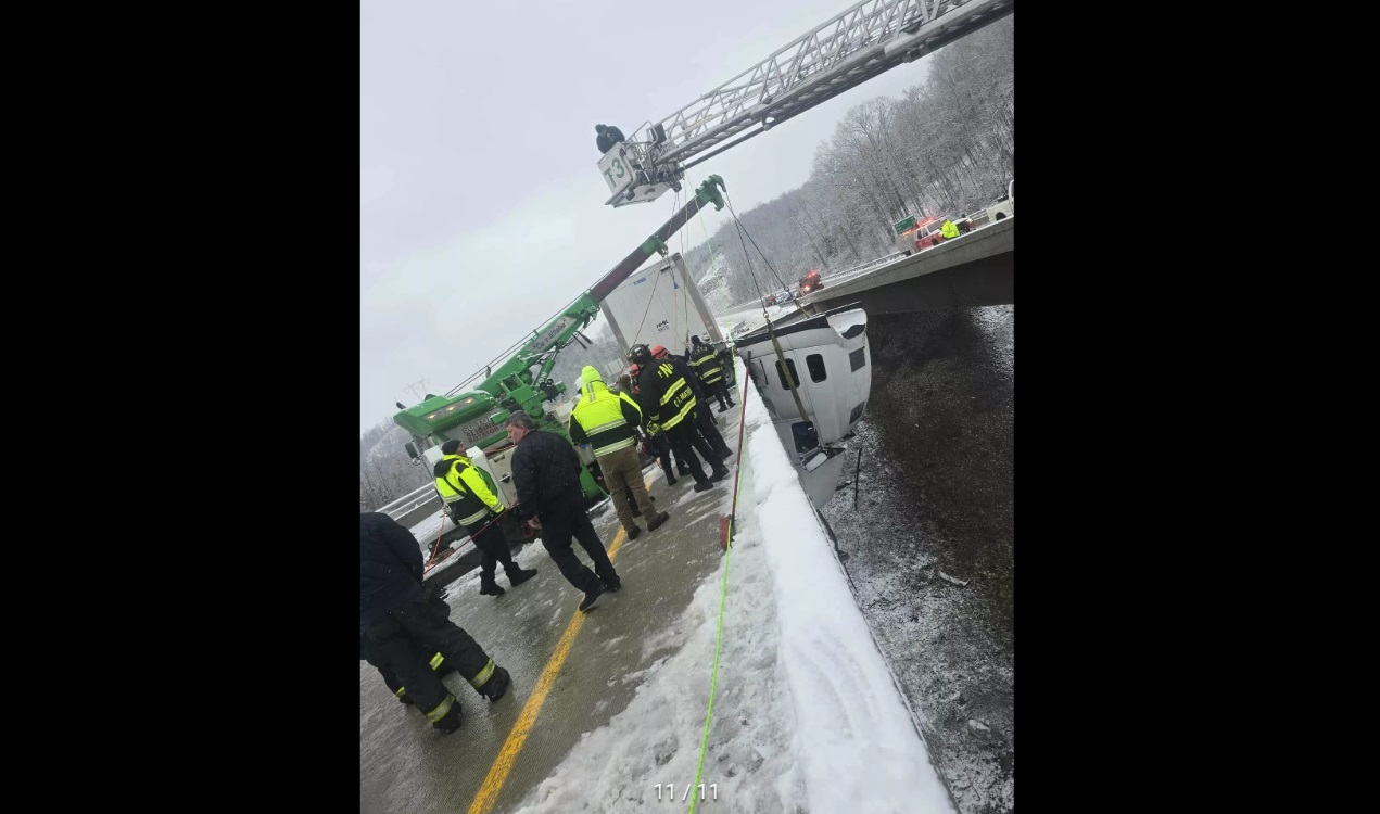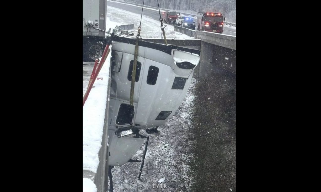 L’événement est arrivé vers 5 heures, le 2 décembre dernier sur la route 35, dans le comté de Mason, en Virginie Occidentale (West Virginia), sur le viaduc surplombant la Little 16 Mile Creek Road. Les causes de l’accident n’ont pas été divulguées mais il est très probable, selon moi, que la chaussée glacée ait surpris le chauffeur de camion transportant des briques.