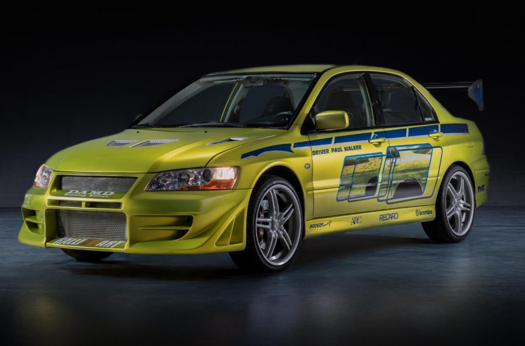 La Mitsubishi Lancer Evo VII conduite par Paul Walker (la vraie voiture et le vrai Paul Walker) dans 2Fast 2 Furious. C’est elle qui devrait se vendre le plus cher, soit entre 400 000$ et 800 000$ canadiens.
