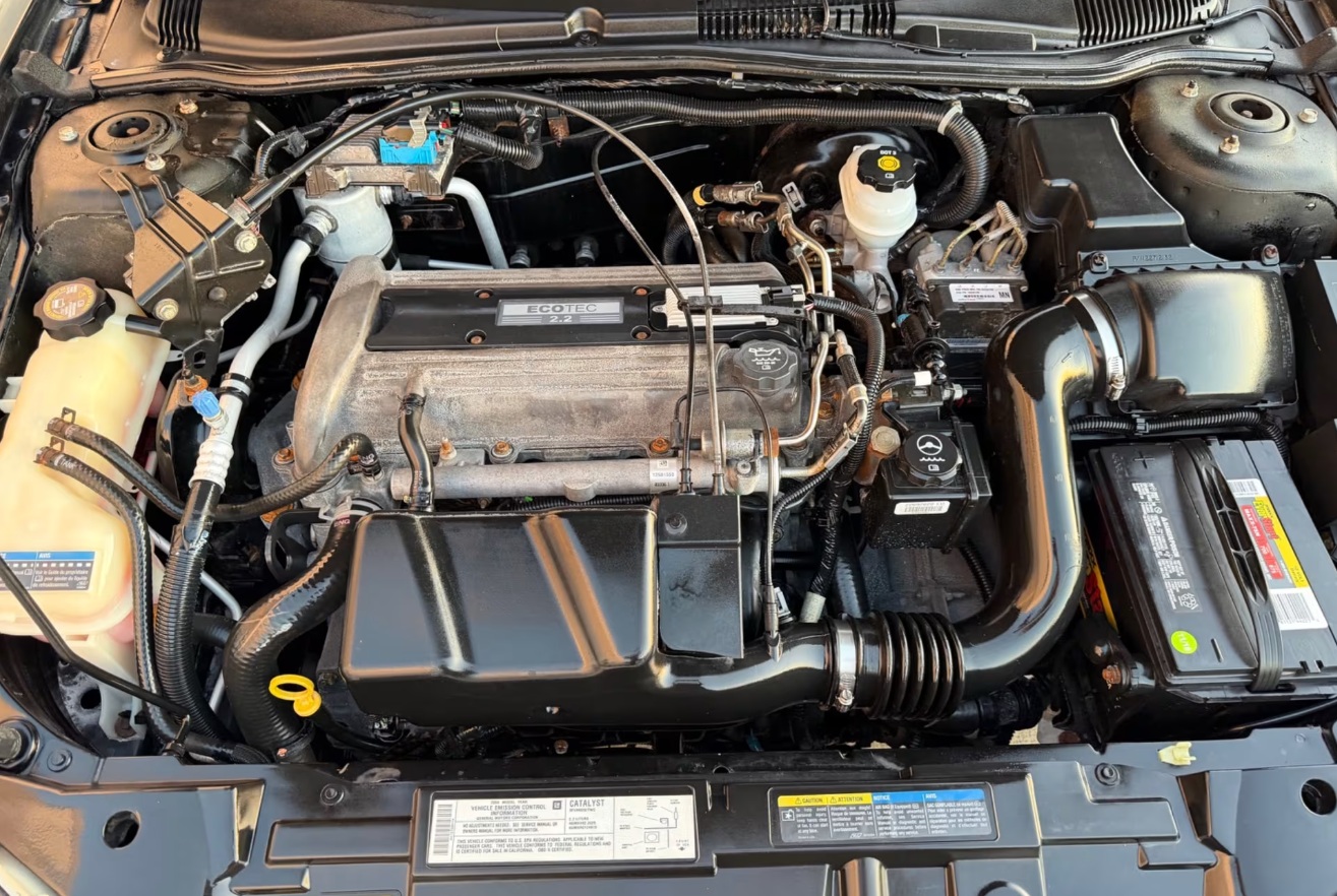 Bref, la Sunfire 2004 a été vendue 4 400$, US of course (6 137$ CAD), un prix qui ne me semble pas exagéré compte tenu du marché actuel et de la qualité de la voiture. Le kilométrage est bas (34 610 milles – 55 700 km, soit 1 331 milles – 2 532 km par année) et elle est complètement originale. Le tableau de bord n’est même pas fissuré. Ce coupé est un modèle 1SC. Le moteur est l’indestructible quatre cylindres 2,2 litres Ecotec. Il livre ici 140 chevaux et un couple de 150 livres-pied.